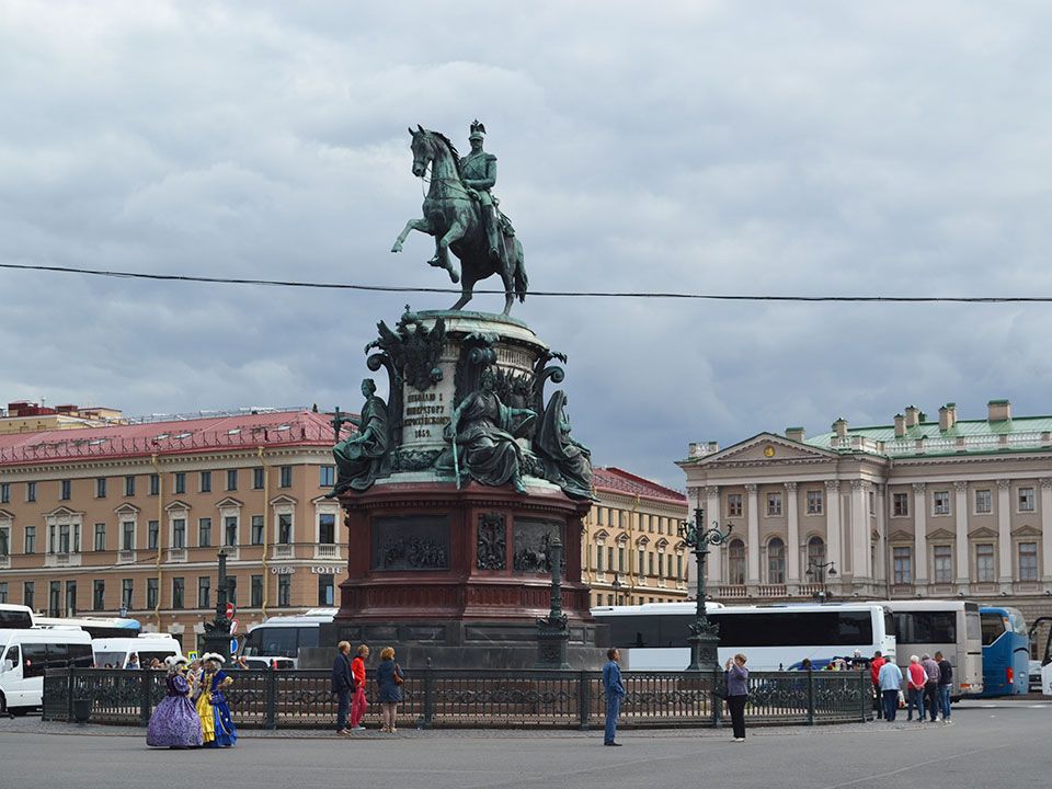 La piazza Sant'Isacco è una delle piazze centrali di San Pietroburgo sulla quale si affacciano la Cattedrale di Sant'Isacco, il Palazzo Marinskij, l'Hotel Astoria. L’inizio della fondazione della piazza attuale risale alla prima metà del 19 secolo. Sulla piazza nel 1859 fu installato Il monumento a Nicola I è una statua equestre. La scultura fu disegnata dall'architetto francese Auguste de Montferrand nel 1856. Questa statua è conosciuta per il fatto che ha solo due punti di apoggio (le due zampe retrostanti del cavallo). Sul piedistallo si trovano quattro figure allegoriche: Fede, Sapienza, Giustizia e Gloria che sono ritratti scultorei della moglie e delle tre figlie dello zar.